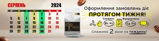 Для забезпечення максимально свіжого та стабільного продукту , ми смажимо каву два рази на тиждень. Вівторок та Четвер.